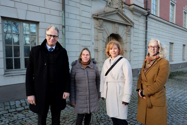 På bilden ovan syns (från vänster) Ingrid Eiken, generaldirektör för Statens fastighetsverk (SFV), UI:s direktör Jakob Hallgren och styrelseordförande Marie Söderberg, och Ulrika Nylander, chef för SFV:s förvaltningsstab.