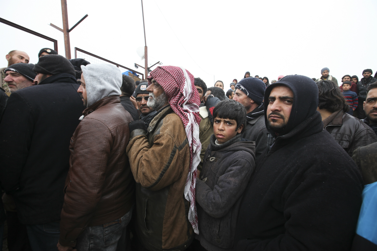 Syrier som flytt ryska bombningar i Aleppo försöker bli insläppta vid en gränspostering mot Turkiet. Foto: Shutterstock