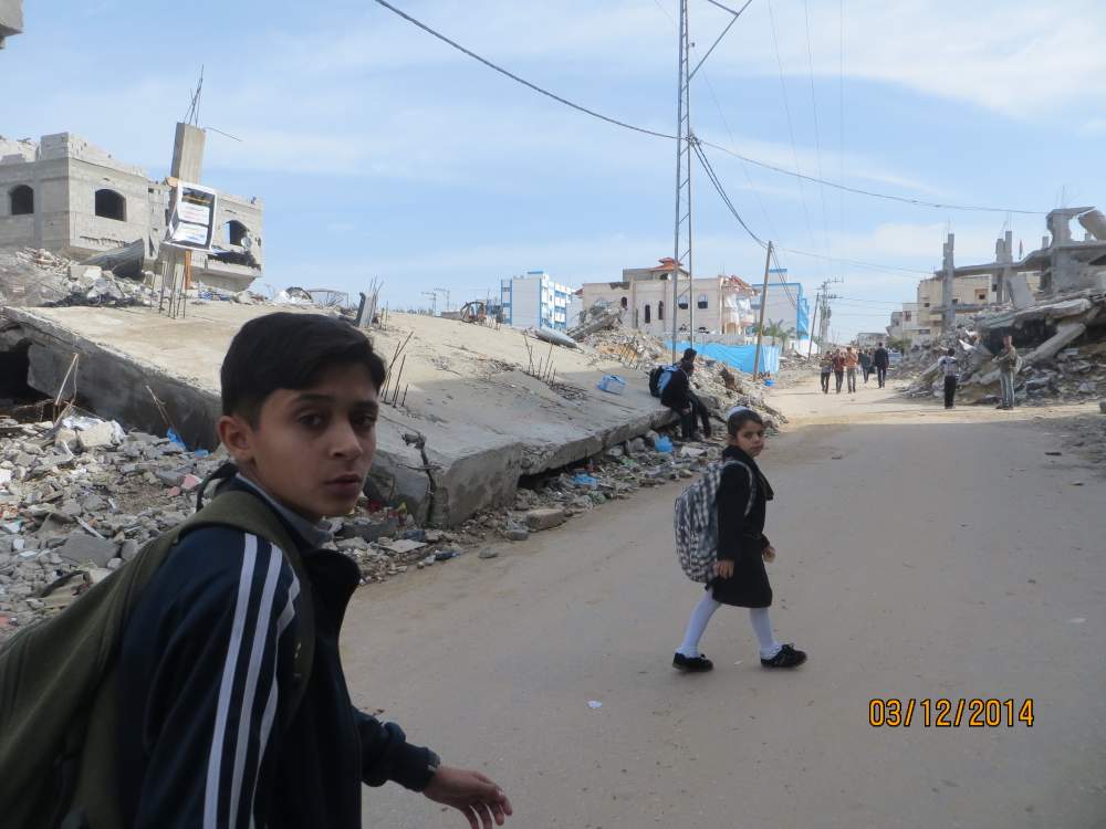 Skolväg i Gaza efter kriget 2014. Foto: Muhammad Sahab/B'Tselem
