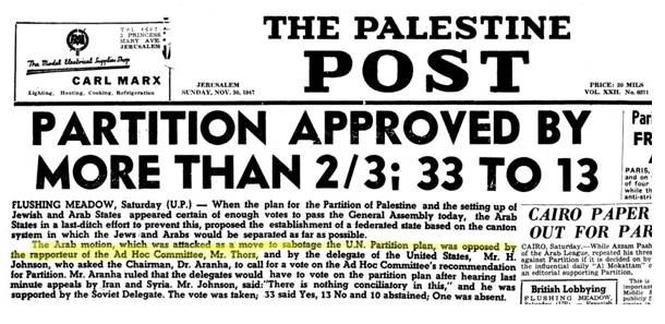 Idag nästan 70 år senare är utsikten att förverkliga FN:s planer på en tvåstatslösning och fred i Mellanöstern dessvärre sämre än på länge. Sedan 1947 har världen bevittnat flera krig med många dödsoffer, ett stort antal terroristhandlingar och ett omfattande lidande hos civilbefolkningen.