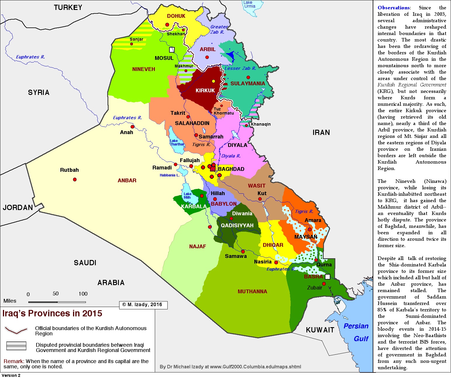 Politikerna i Bagdad å sin sida misstror sina kolleger i Erbil, huvudstad i det självstyrande irakiska Kurdistan, vilka anser sig ha rätt att behålla alla områden som de befriat från IS och som dessutom diskuterar konkreta planer på kurdisk självständighet. Staden Kirkuks framtid kommer utan tvivel att bli föremål för hätska diskussioner som kan leda till nya våldsamheter. General Sirwan Barzani, ansvarig för frontavsnittet mellan Mahkmour och Gwer, hoppas på kurdisk självständighet inom två år. Den rådande schismen och misstron påverkar samordningen av Mosuloffensiven och denna friktion kan orsaka fördröjningar.