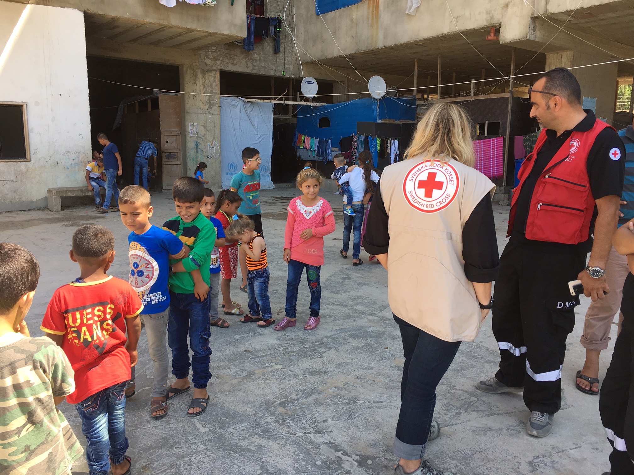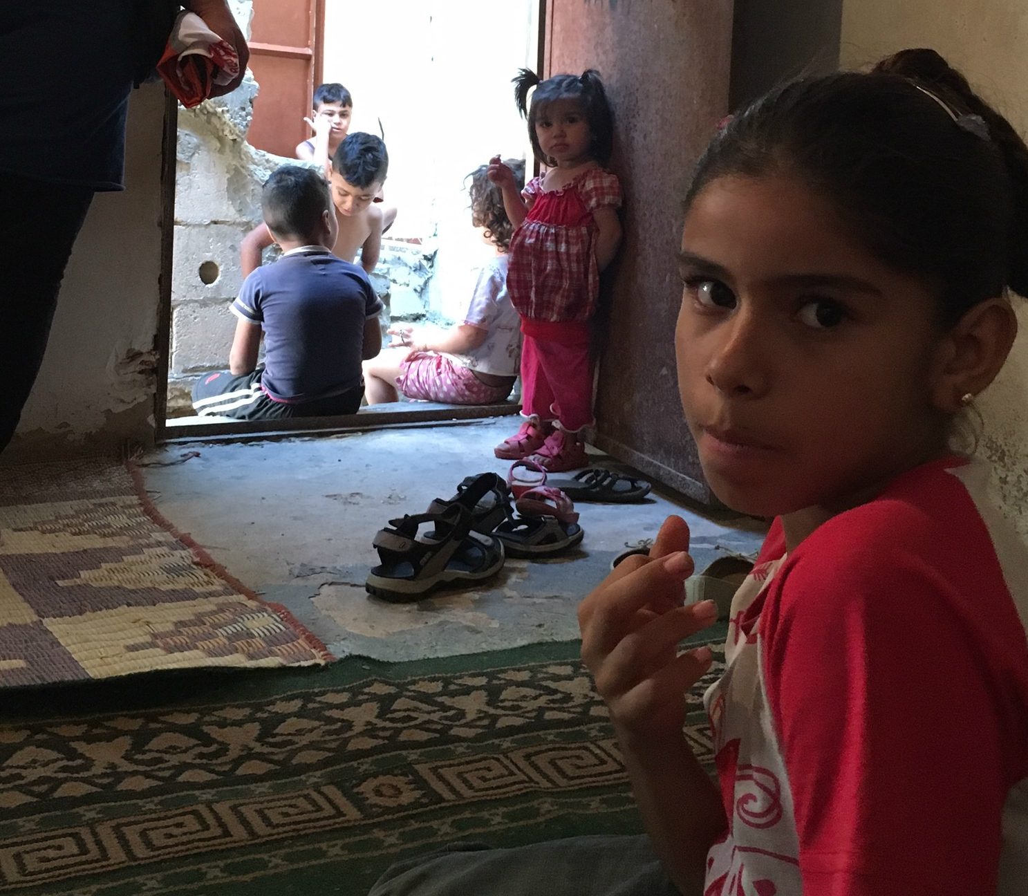 Syriska barn som flytt med sin mamma undan strider på landsbygden utanför Aleppo – här i ett provisoriskt boende i flyktinglägret Shatila utanför Beirut. Foto: Bitte Hammargren