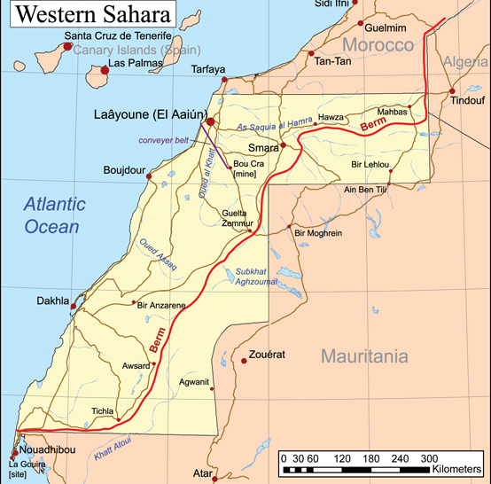 Västsahara. Karta: Wikipedia