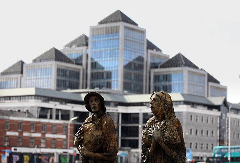 Statyer av svältande människor i Dublins finansdistrikt. Svältåren vid 1800-talets mitt är central för den irländska identiteten. Foto: Pweter Morrison/AP/TT.