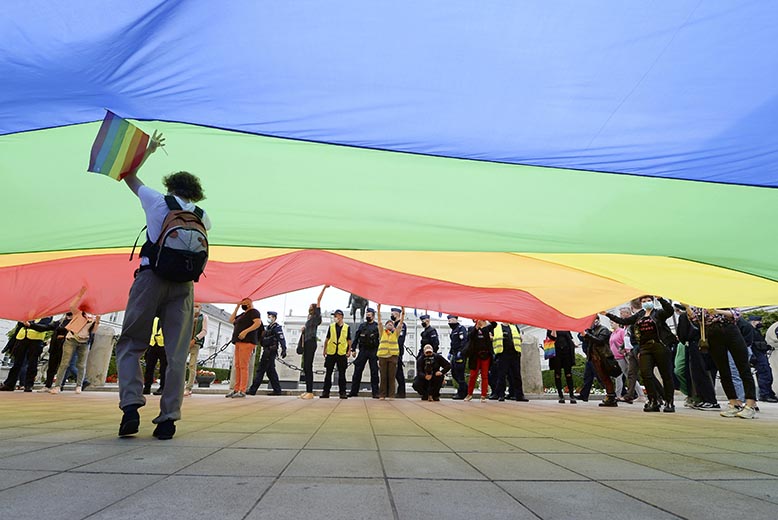 Demonstration i Warzsawa mot hat mot hbtq-personer i augusti 2020. Foto: Czarek Sokolowski/AP/TT