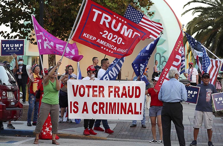 Det fjärde exemplet avser Trumps agerande före och efter årets val. Presidenten har kommit med mängder av vilseledande och falska uttalanden, varav två har särskilt stor politisk vikt. Det ena har gått ut på att det enda sätt på vilket Trump kan besegras är genom att hans motståndare fuskar i valet. I den andra typen har presidenten upprepade gånger hävdat att omfattande poströstning alltid leder till mängder med fusk. Eftersom covid-19-pandemin ledde till just poströstning i stor skala har presidenten upprepat sina påståenden om utbrett valfusk.