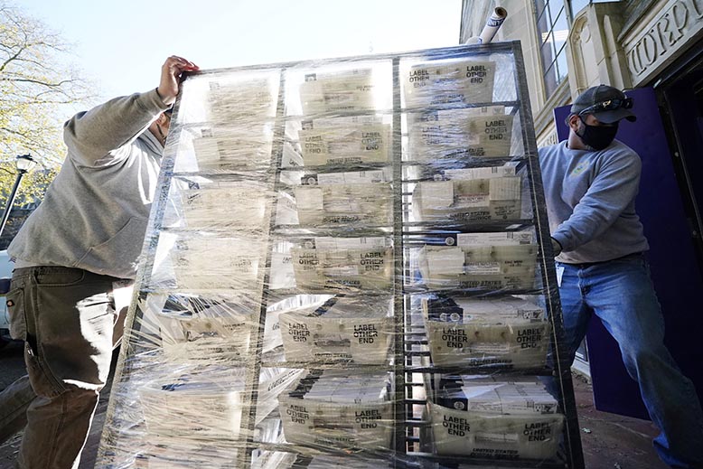 Leverans av poströster för räkning i Chester County, Pennsylvania, den 4 november. Foto: Matt Slocum/AP/TT.