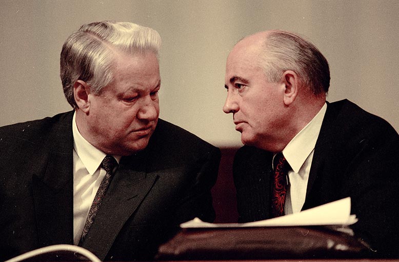Andra tider. Både Boris Jeltsin (t v) och Michail Gorbatjov talade om nära band till Europa. Foto: AP/TT.