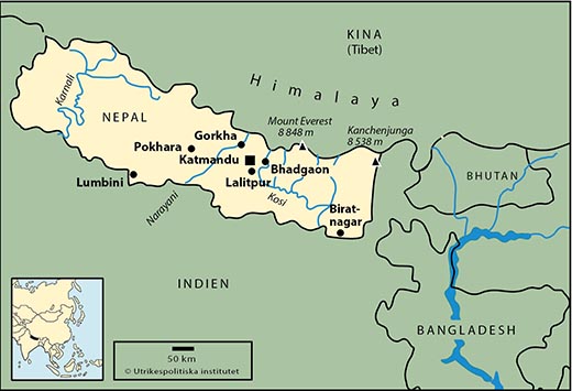 Nepal saknar kust, och är inklämt mellan Kina i norr och Indien i söder. Landet delar 190 mil gräns med Indien och 140 mil med Kina. Peking har inom ramen för det så kallade Sidenvägsinitiativet föreslagit investeringar på motsvarande cirka 70 miljarder kronor i Nepals infrastruktur. För regeringen i Katmandu är det dock viktigast att ha en god relation med Indien, som man delar religiösa, etniska, språkliga och kulturella band med. Nästan åtta miljoner av Nepals 28 miljoner invånare bor och jobbar i Indien tack vare ett avtal från 1950 om fri rörlighet över gränsen. Många nepaleser jobbar inom Indiens polis, militär och halvmilitära styrkor. Handeln mellan länderna uppgår till cirka 60 miljarder kronor. Indien har också investerat stort i infrastruktur, sjukvård och utbildning i det nordliga grannlandet.