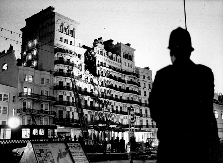 Ett av IRA:s mest spektakulära dåd var bomben 1984 på Grand Hotel i Brighton mot regeringspartiet Tories kongress. Fem personer dödades och över 30 skadades. Premiärminister Margaret Thatcher klarade sig med en hårsmån. Foto: UPA/TT