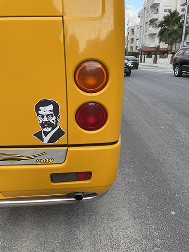 Iraks exdiktator Saddam Hussein dyker upp här och var på jordanska bilar, som en arabnationalistisk markering mot både Israel och Iran. Foto: Bitte Hammargren
