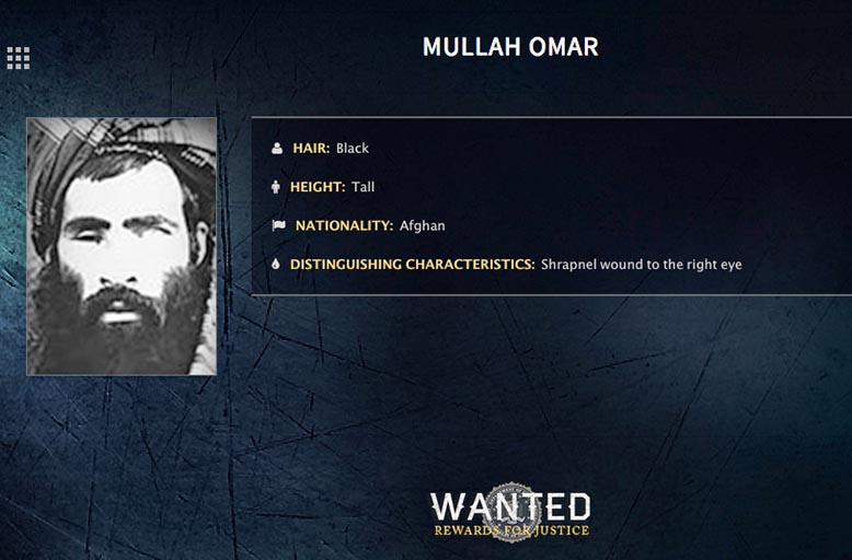 En odaterad efterlysning av den tidigare afghanske ledaren mulla Omar, av amerikanska FBI. Mulla Omar gick under jorden när USA invaderade Afghanistan 2001. Foto: FBI via AP/TT