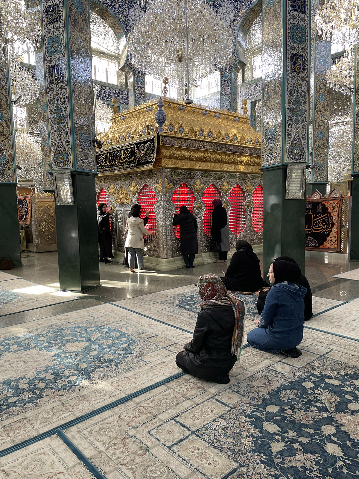 Den enda vägspärr jag måste stanna till vid under en vecka i Damaskus ligger på vägen till den stora shiitiska helgedomen Sayyeda Zeinab. Denna vallfartsort med sin höga guldbeklädda kupol reser sig över gränder som tidigare var fyllda av vallfärdande shiamuslimer från Irak, Libanon och Iran. Där kunde man före inbördeskriget också stöta på långväga pilgrimer från Indien, Pakistan och länder i väst. De är alla bortblåsta efter Assadregimens plötsliga kollaps den 8 december 2024. Nu syns bara syriska shiiter och det är glest med besökare eftersom denna minoritet inte är stor.